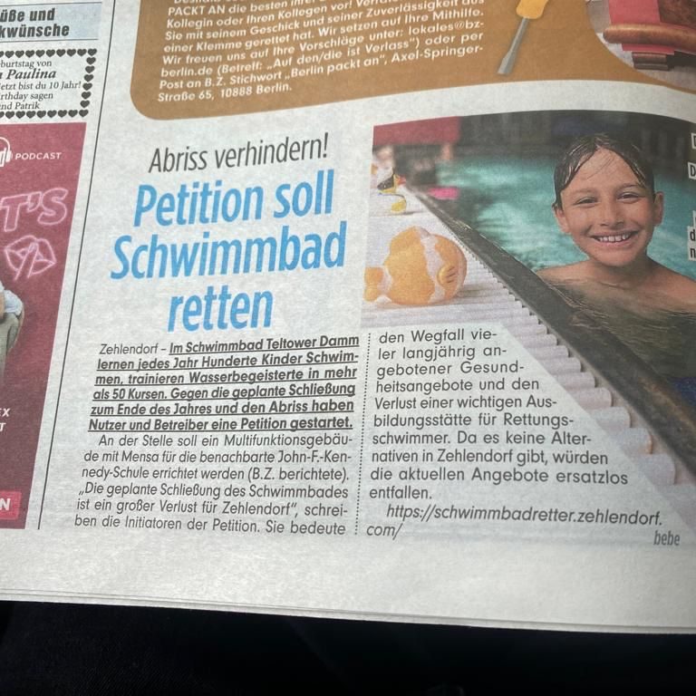 Weitere Unterstützung erhielten wir vom PrimaVita Bad Zehlendorf im Frühjahr 2023, woraufhin ein Kooperationsvertrag geschlossen werden konnte. Schwimmunterricht im PrimaVita Bad geben wir seit 04.2023., und führen dort Schwimmkurse vom Seepferdchen - Bronze/Silber ( in Vorbereitung ) durch.